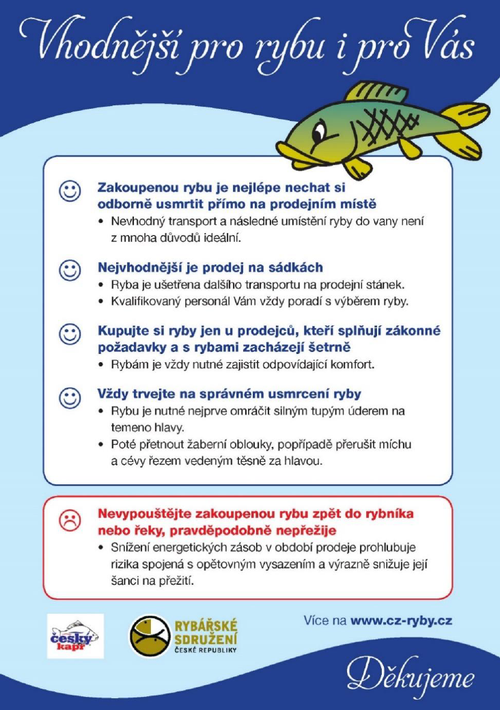 Připojujeme se k Rybářskému sdružení ČR, jehož jsme členem, a zveřejňujeme tiskovou zprávu k aktuálnímu prodeji vánočních ryb.
